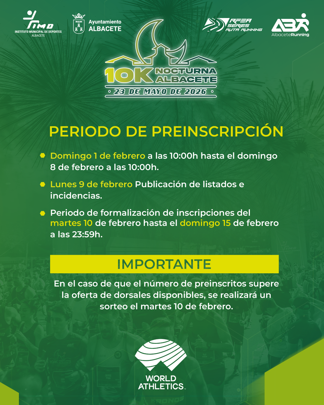 🆕️ Este año como novedad, la 10K Nocturna Internacional Ciudad de Albacete contará con un periodo de preinscripción para facilitar el proceso de inscripción de todos los participantes.